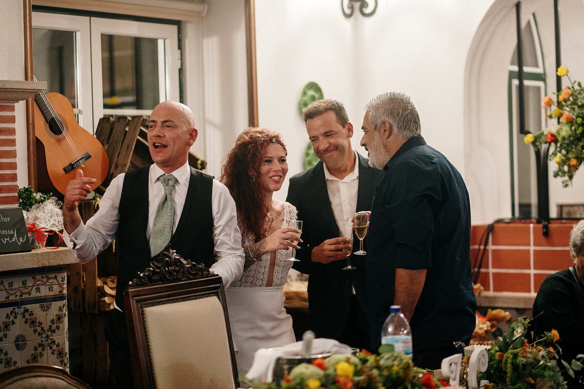 O humor criou o palco para surpresas, discursos e demonstrações de amor por parte dos noivos e dos convidados permitindo uma ou outra lágrima ocasional.